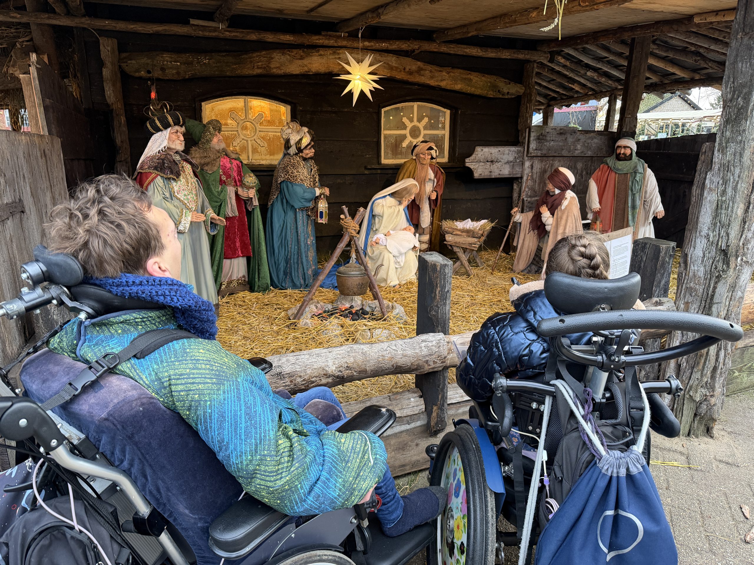 Toen een rondje gelopen om te wachten tot de boompjes droog waren. We zijn langs de dieren en de kerststal gelopen. We hebben heel veel winkeltjes gezien en ook nog even op de slee gezeten.