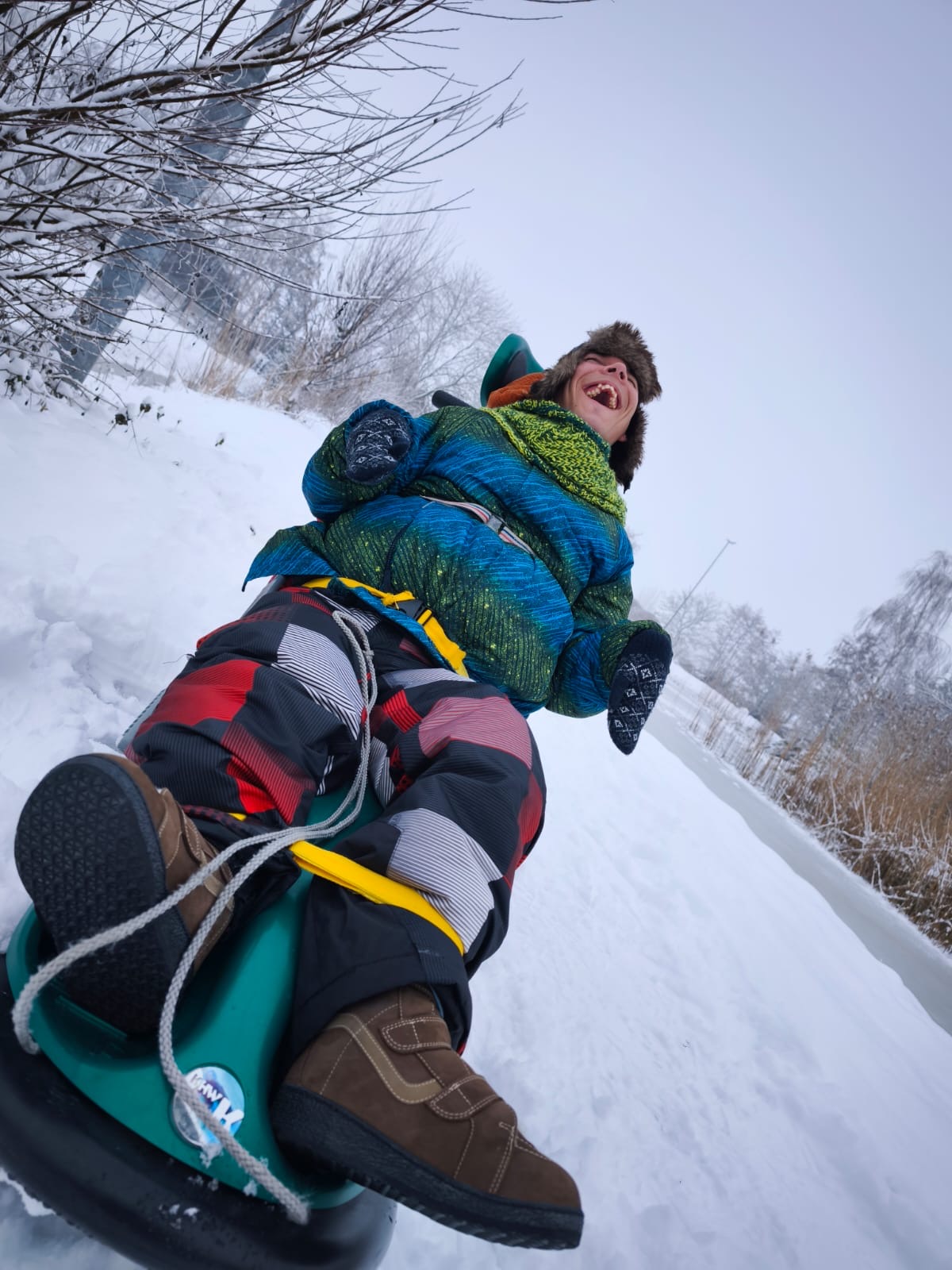 23 januari 2026Sleeën in De Glind en van alles – Na een lekkere rustige start (Mees wat langzaamaan wakker en was een beetje nukkig) moesten we even wachten tot het gekookte water was afgekoeld dus nog iets rustiger aan gestart… Hebben we lekker gedoucht en toen was meneer helemaal wakker en gezellig. Wel is Mees de hele ochtend rustig geweest, wel vrolijk en gezellig maar rustig. Bij het uit bed halen viel me op dat Mees een kapotte lip had. Zit een klein plekje op zn lip, ingesmeerd en de rest van de dag was het goed.
