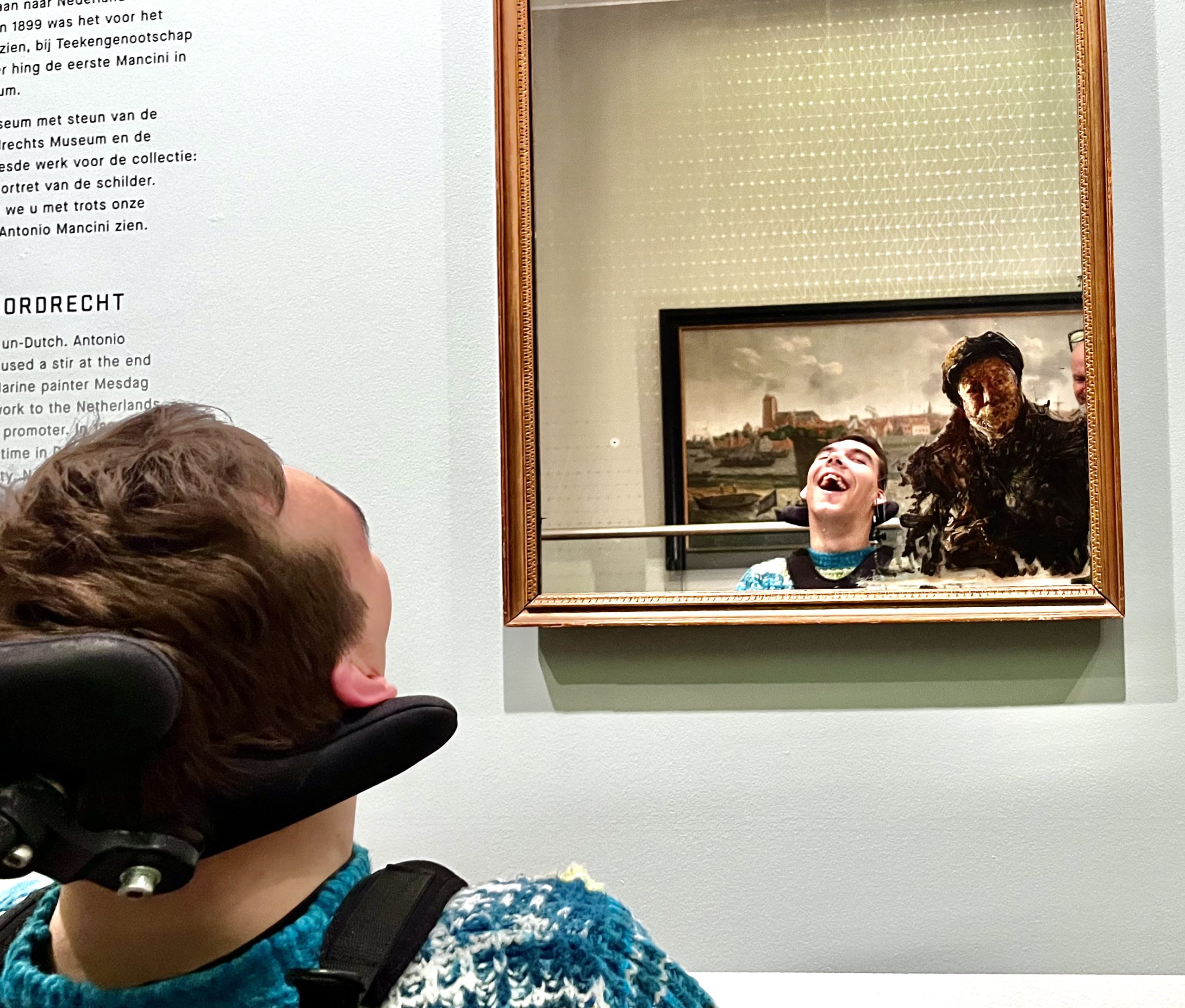 We vertrokken tegen de middag en waren iets over enen bij het Dordrechts museum. Mees keek zijn ogen uit, overal zaten lampen aan het plafond en was er wel iets te zien dat hij interessant vond. Verder had hij geluk, want er werd best regelmatig veel gehoest. Op een gegeven moment kon Mees amper meer stoppen met lachen. De kunstwerken trokken iets minder zijn aandacht, maar daar had ik dan weer meer de focus op.